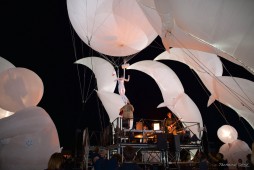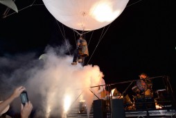 Spectacle à 360°, il est visible par tous puisque qu'il se joue au milieu du public et dans les airs : Echassiers, structures gonflables, comédiens volants....jusqu'à 50 mètres de haut !!!